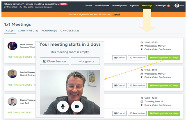 - 「Participant」および「Marketplace」を閲覧し、ポテンシャルミーティングパートナーの検索。
